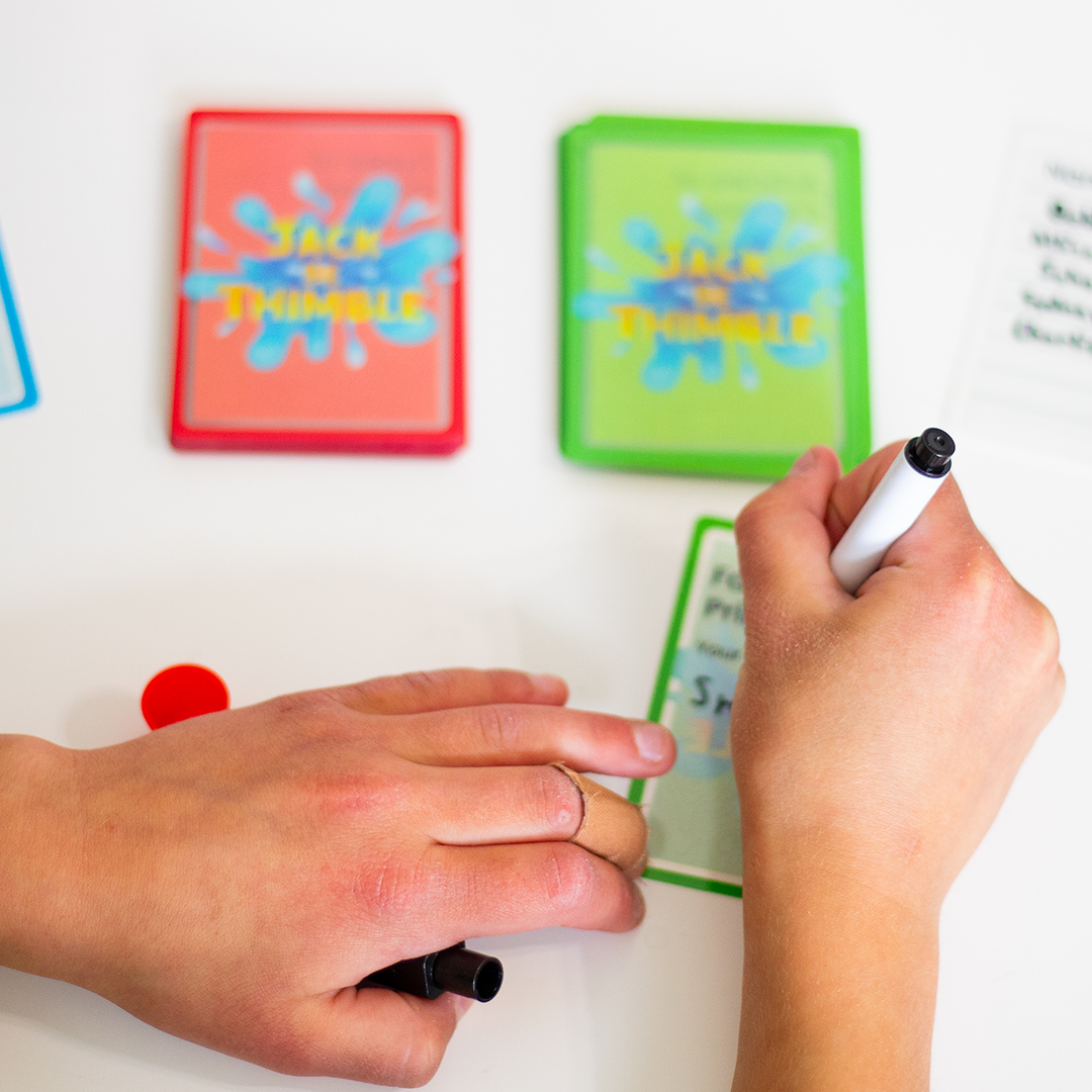 Jack Be Thimble is an endlessly fun word-guessing game that will create lasting memories with friends and family of all ages!